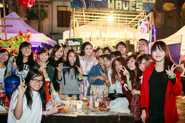 Sau đêm diễn, Hoa hậu dành thời gian giao lưu với sinh viên và gặp bạn bè cũ.