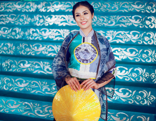 NTK muốn gửi đến Huế chút mộc mạc, bình dị qua chiếc áo dài xưa với dáng suông rộng trên nền gấm và lụa tơ tằm với những hoạ tiết vá, thêu tay trên sắc màu của gốm sứ men lam.