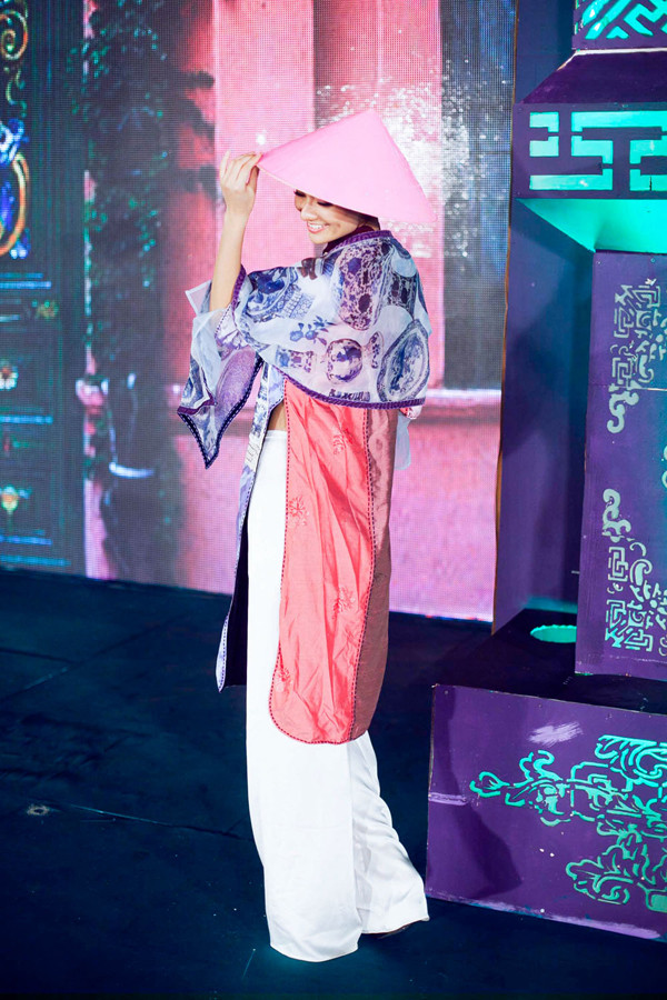 NTK mang vào BST một cảm nhận mộc mạc nhưng vô cùng đặc sắc qua những tà áo dài cảm hứng từ Việt Nam.