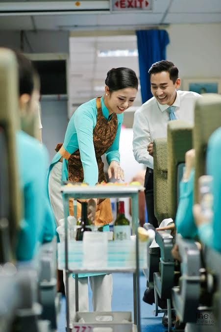 Trước khi bắt tay vào công việc, hoa hậu cùng nam diễn viên trải qua một khóa đào tạo tại Trung Tâm huấn luyện của Vietnam Airlines về kỹ năng của nhân viên mặt đất và tiếp viên hàng không.