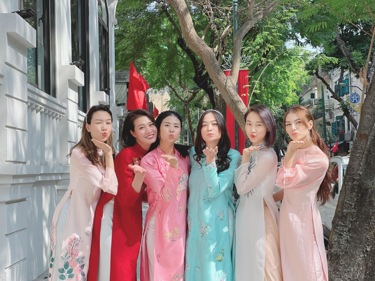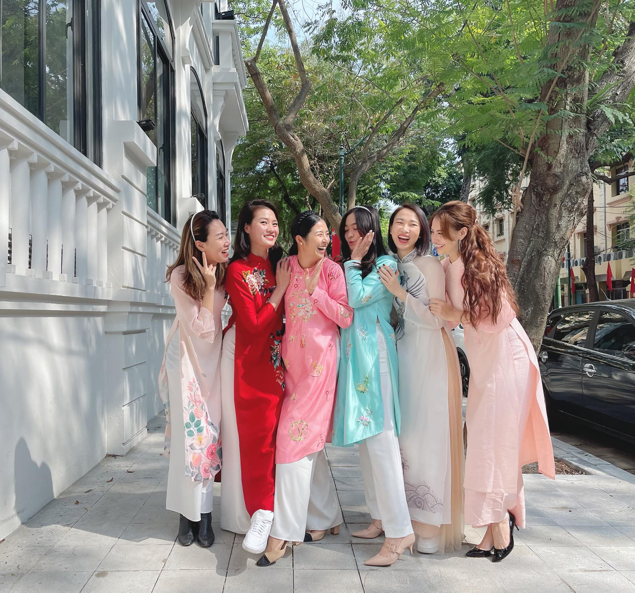 Ngọc Hân và hội bạn thân cả thập kỷ mặc áo dài khoe dáng trên phố Xuân mùng 2 Tết