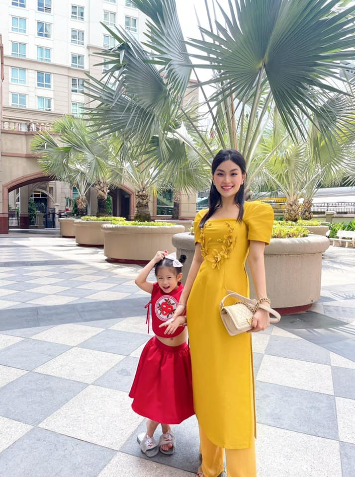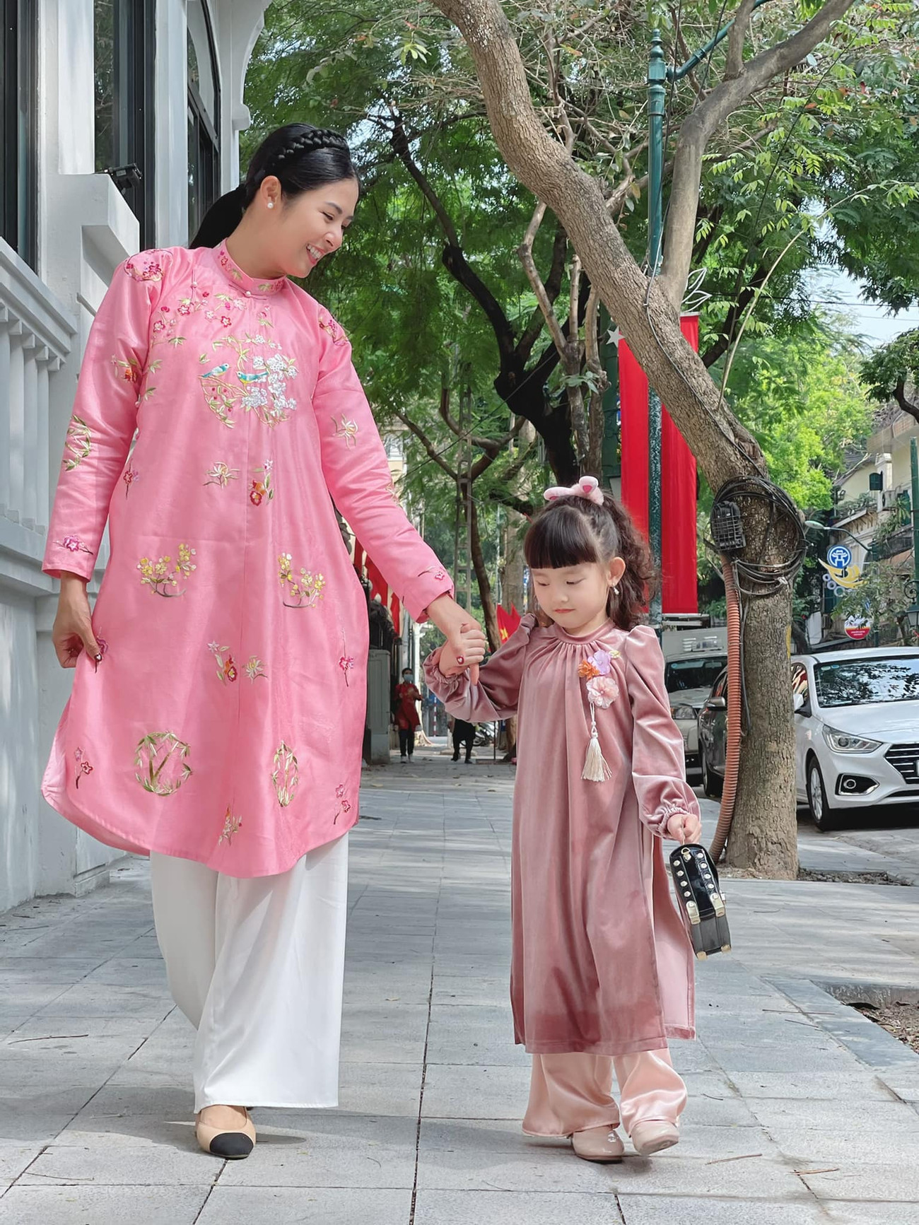 Diễm Trang và con gái nổi bật trên phố với trang phục rực rỡ.