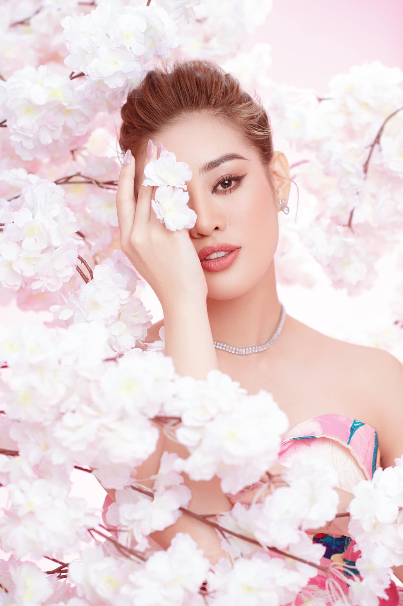 Khánh Vân đẹp như nàng thơ mùa Xuân, yêu kiều bên hoa đào.