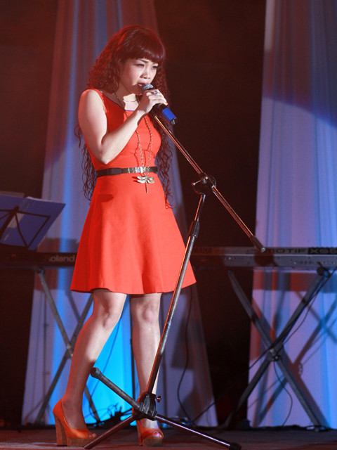 Ở vị trí “cầm cân nẩy mực”, Ngọc Khuê chăm chú theo dõi phần dự thi của các thí sinh. Nhưng khi bước lên sân khấu với vai trò ca sĩ, “chuồn chuồn ớt” rạng rỡ hơn hẳn và nhập mình vào khúc hát “Tình tang”.
