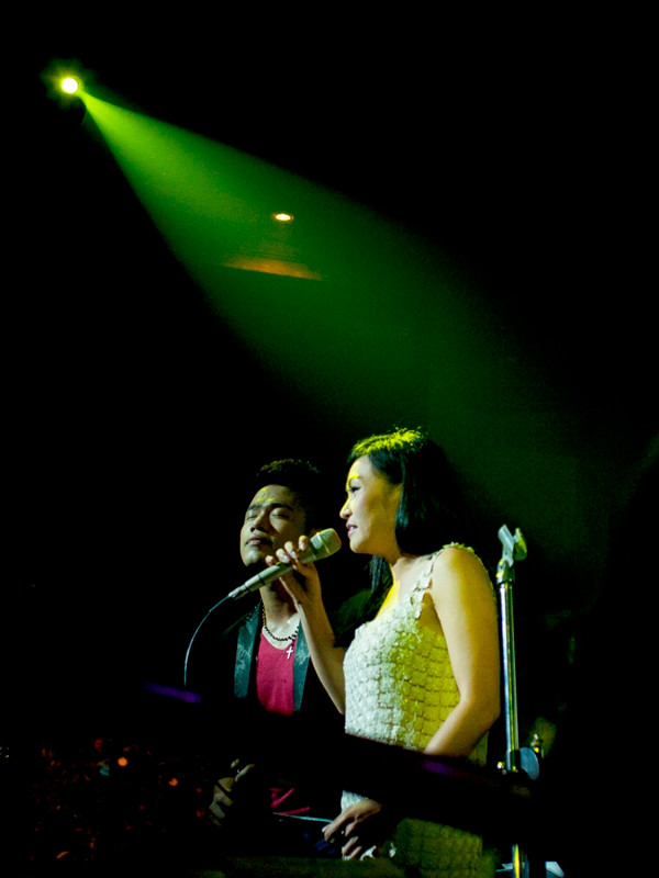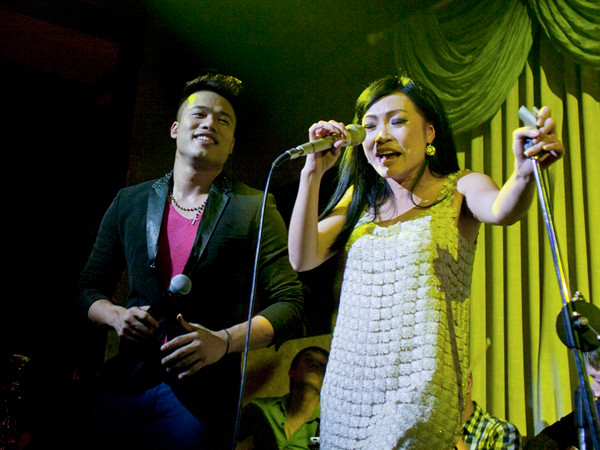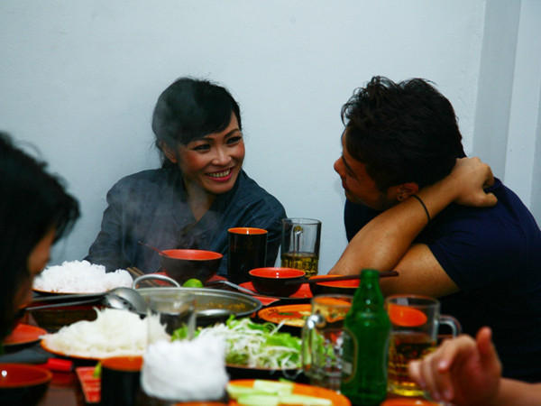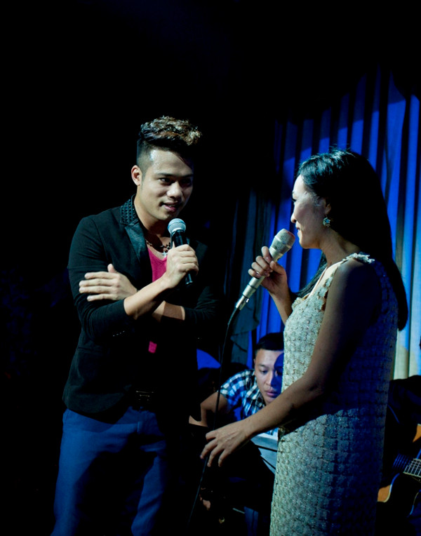 TPO - Chàng ca sĩ trẻ không ngần ngại có những cử chỉ thân mật trên sân khấu bên đàn chị, sau đó hai người tiếp tục sánh đôi rất tình tứ để đi ăn đêm sau buổi biểu diễn.