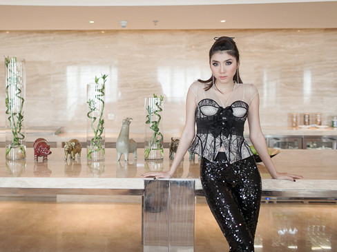 Nữ người mẫu diện một chiếc áo cúp ngực gợi cảm được thiết kế bằng chất liệu ren, kết hợp với quần da óng ánh và bốt đen cao tới đầu gối. Ngọc Quyên đã gây ấn tượng bởi hình ảnh mạnh mẽ, cá tính và bốc lửa của mình.