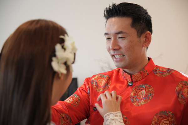 Richard cũng mặc áo dài đỏ truyền thống của người Việt khi sang đón cô dâu.