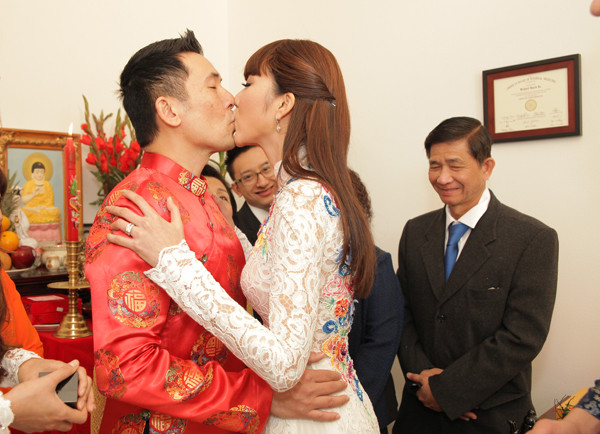 ... và nụ hôn ngọt ngào. Trước khi tổ chức đám cưới, Ngọc Quyên và Richard đã hoàn tất thủ tục đăng ký kết hôn tại Mỹ.