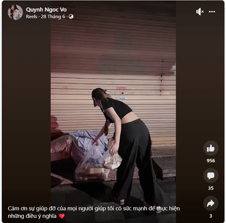 Chuỗi hoạt động thiện nguyện được Ngọc Quỳnh chia sẻ trên trang cá nhân của cô. Điểm đến của cô nàng là những ngôi chùa cưu mang trẻ cơ nhỡ, bỏ rơi, những mái ấm tình thương, những người vô gia cư… Nhìn những tấm ảnh mà cô chia sẻ có thể thấy, dù mồ hôi ướt đẫm, diện trang phục quần jeans giản dị và make-up nhẹ nhàng, Na Thỏ vẫn luôn giữ được vẻ ngoài xinh đẹp, sang chảnh.