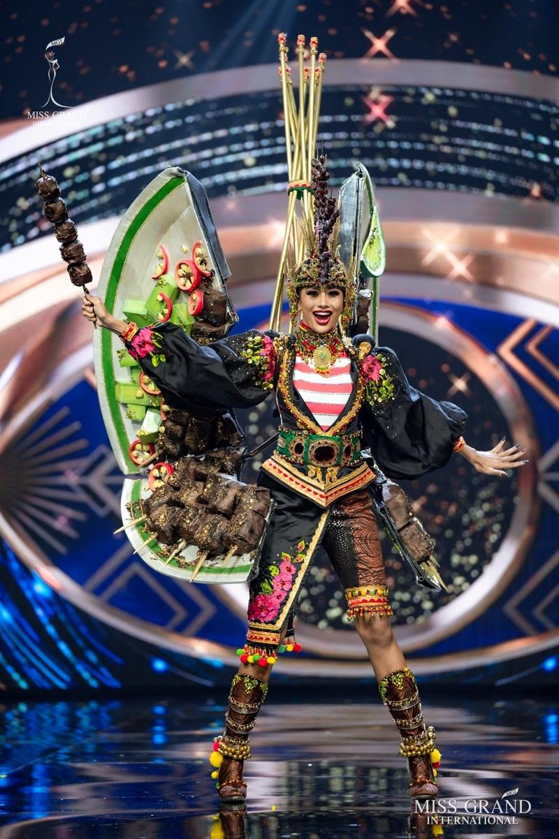Hoa hậu Indonesia mặc bộ trang phục cầu kỳ với thiết kế là món ăn đường phố đặc trưng của đất nước.