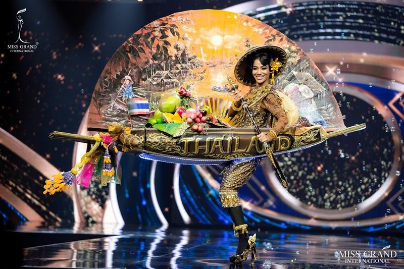 Hoa hậu nước chủ nhà vác nguyên hình ảnh con thuyền đặc trưng của sông nước Thái Lan đến đêm thi.
