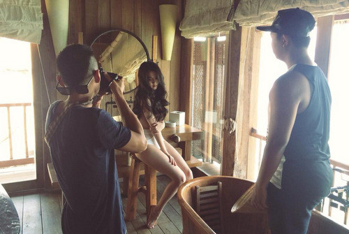 Cô khá hài lòng với thành quả trong lần đầu hợp tác với nhiếp ảnh Tang Tang. Stylist Đỗ Long, bạn thân của Ngọc Trinh, cũng đi cùng để hỗ trợ người đẹp.