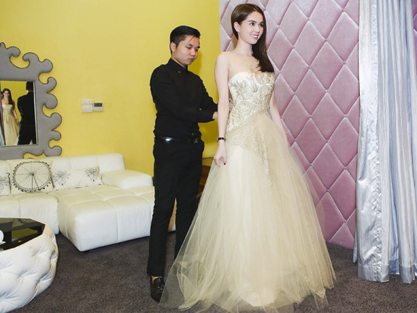 Mỹ nhân quê Trà Vinh thử nhiều bộ váy áo khác nhau. Ngoài váy mua ở tiệm của Lý Nhã Kỳ, cô còn đặt riêng một bộ đầm hàng hiệu từ nước ngoài.