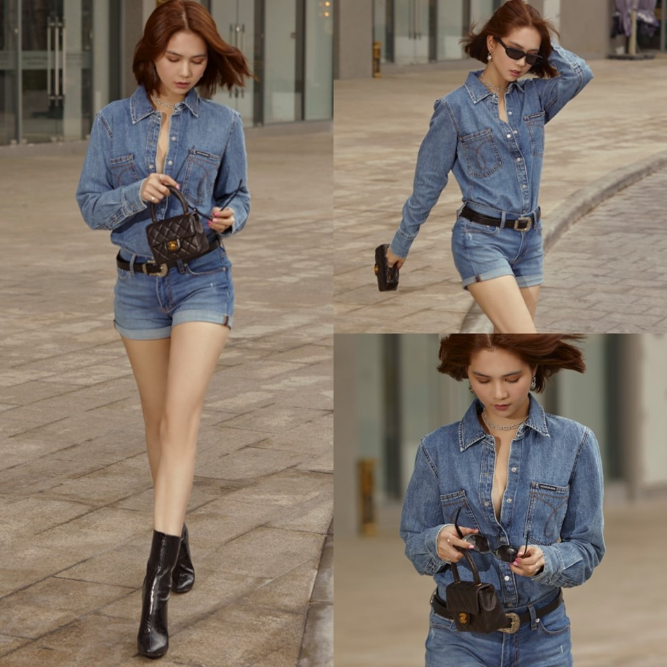 Cô thường diện trang phục khoe vòng một hờ hững.