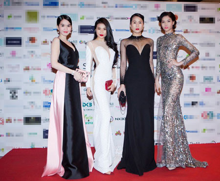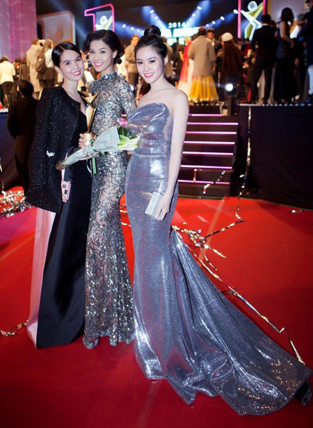 Nếu như Ngọc Trinh lựa chọn thương hiệu uy tín của Valentino thì Thái Hà diện chiếc đầm hiệu Georges Hobeik tông đen sang trọng và quyến rũ do Lý Nhã Kỳ tài trợ.