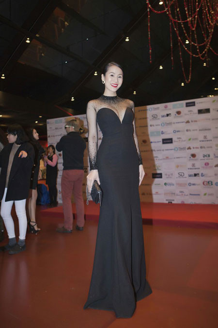 Dù cũng vận bộ đầm màu đen, nhưng với thiết kế tinh tế ở phần ngực đã khiến Thái Hà khoe được vẻ gợi cảm, đồng thời khiến cho bộ trang phục trở nên sang trọng hơn