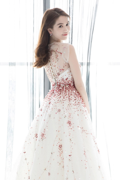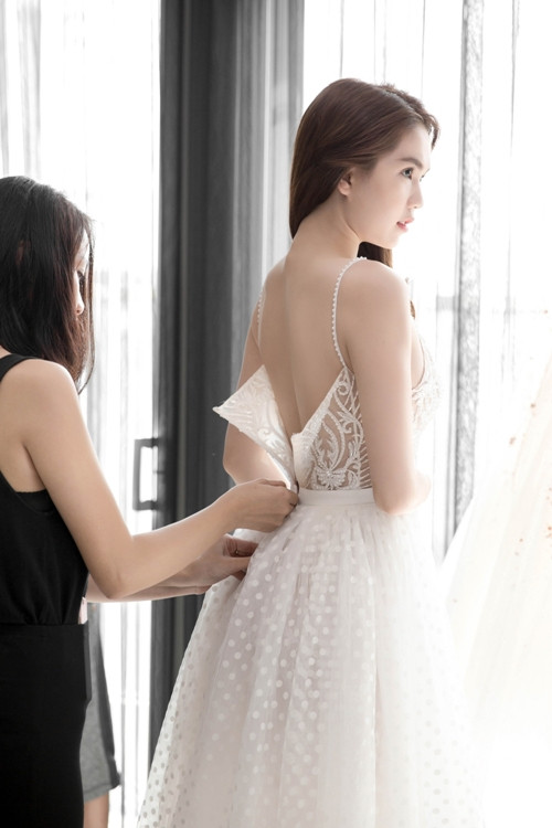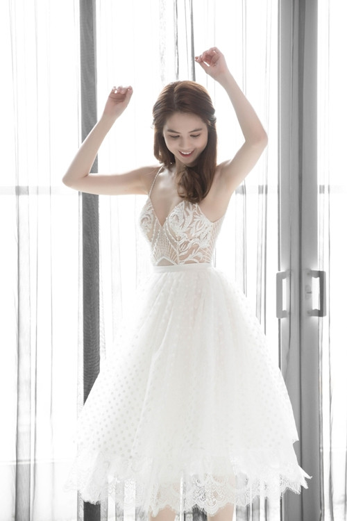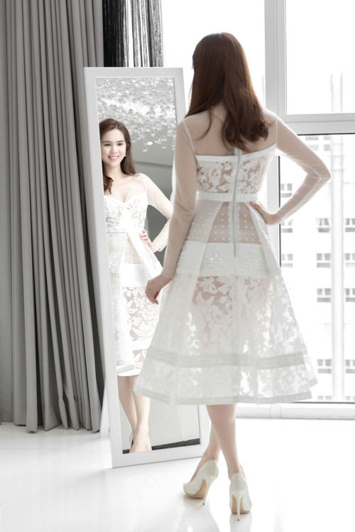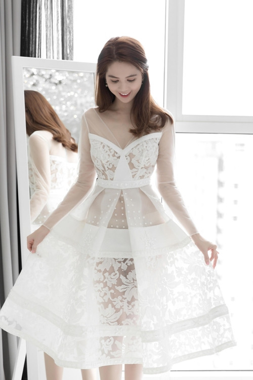Ba thiết kế dành cho Ngọc Trinh đều màu trắng, có chất liệu ren và lưới xuyên thấu.