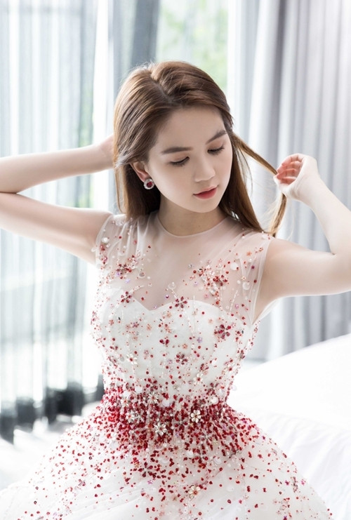 Thiết kế hai dây kết hợp cùng phần chân váy phồng xòe giúp người đẹp khoe eo.