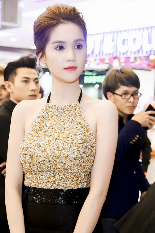 Ngọc Trinh tạo kiểu tóc phồng giúp "ăn gian" chiều cao, trang điểm lớp nền trong suốt phong cách Hàn Quốc.