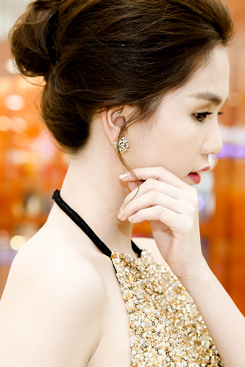 Tối 3/2, Ngọc Trinh dự một sự kiện ở TP HCM. Cô mặc váy bó, thân trên cách điệu kiểu váy yếm. Đôi hoa tai ăn ý với họa tiết đính đá trên thân áo.