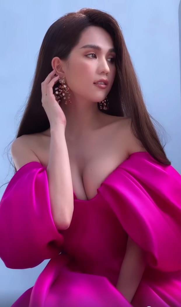 Theo đó, người đẹp nội y diện một chiếc váy trễ nải màu hồng của nhà thiết kế Lê Thanh Hòa.