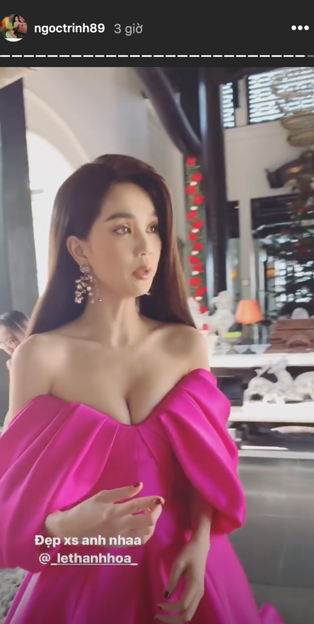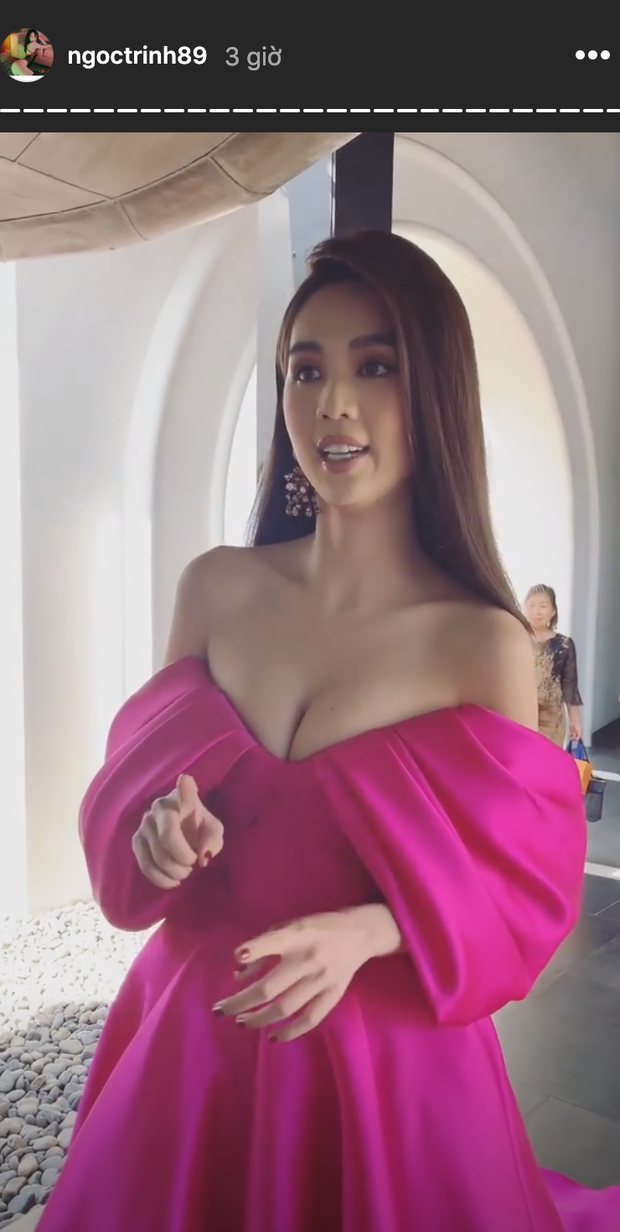 Đồng thời, Ngọc Trinh thậm còn nối tóc dài để tăng thêm sự nữ tính của bộ váy.