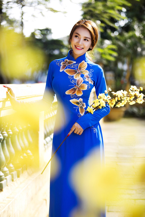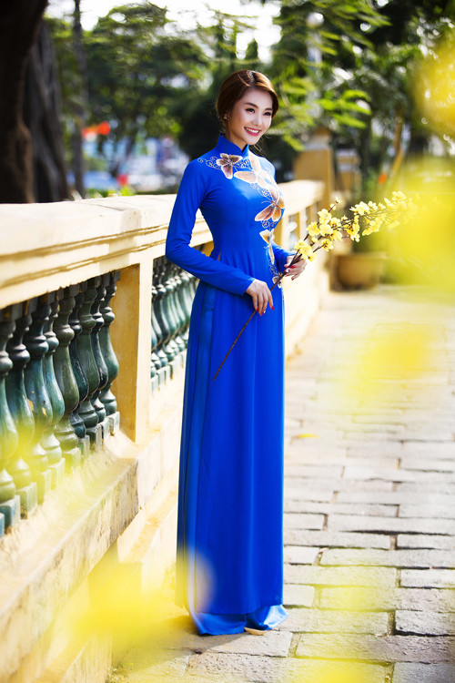 Họa tiết hoa hay cánh bướm chạy dọc thân áo giúp người mặc nổi bật.