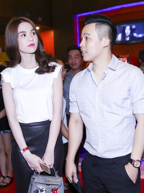 Ngọc Trinh ăn mặc thanh lịch, kín đáo tới mừng cô em đồng nghiệp thân thiết có vai diễn trên màn ảnh rộng.