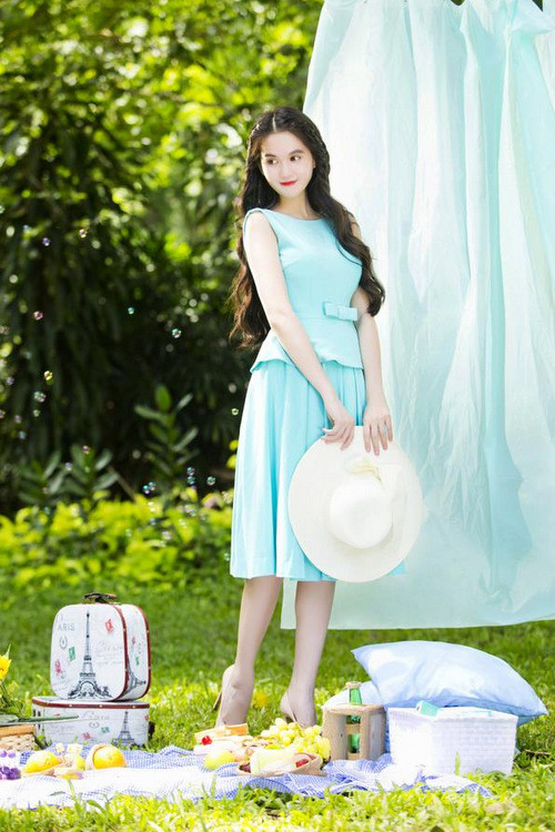 Trong bộ ảnh mới nhất, Ngọc Trinh hóa thân thành một nàng tiểu thư xinh đẹp trong chuyến dã ngoại vào một ngày nắng sớm.