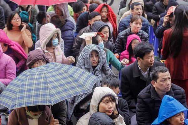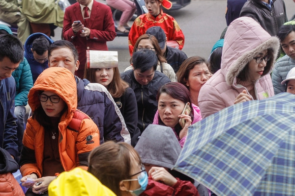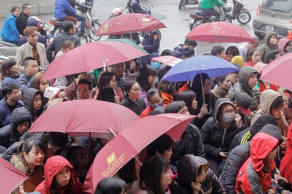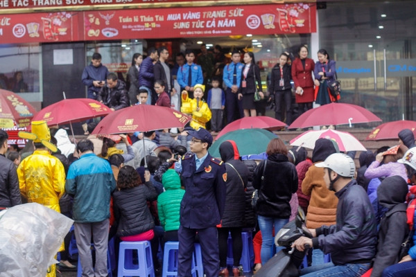 Ngồi chờ dưới mưa hàng giờ để mua vàng ngày vía Thần Tài