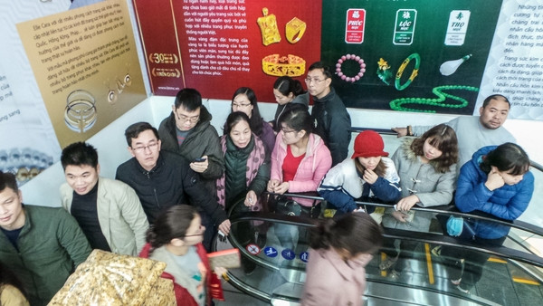 Bên trong cửa hàng vàng cũng trở nên tắc nghẽn trước các quầy.
