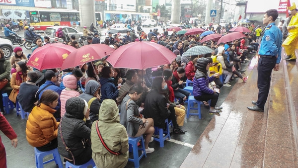 TPO - Mặc trời mưa gió, người dân vẫn kéo đến ngồi dưới mưa xếp hàng tại các cửa hàng vàng Hà Nội trong ngày vía Thần tài, mùng 10 Âm lịch.