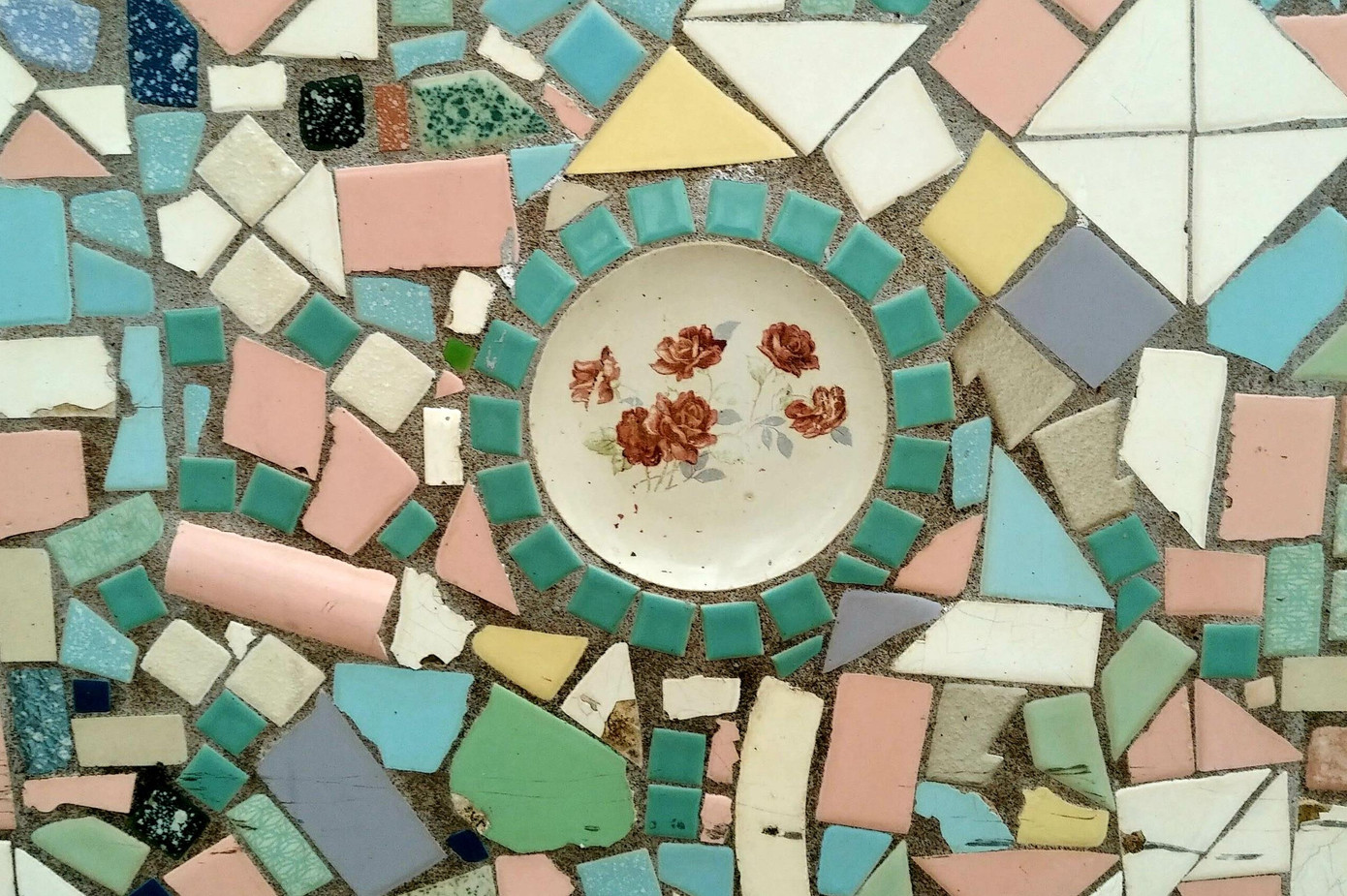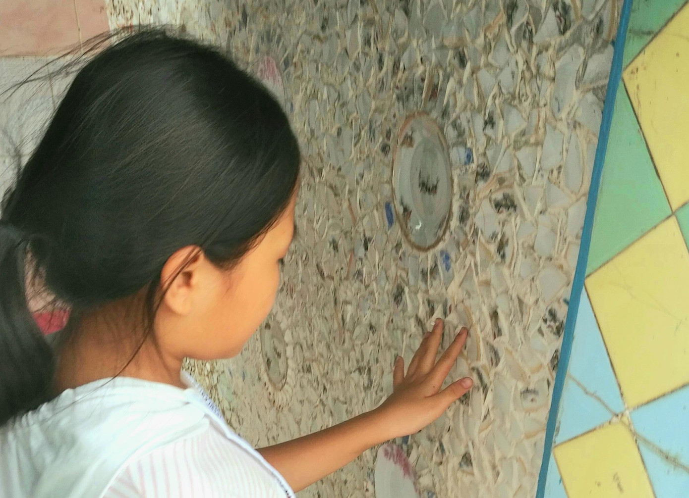Phần tường được trang trí bằng chén, đĩa kiểu
