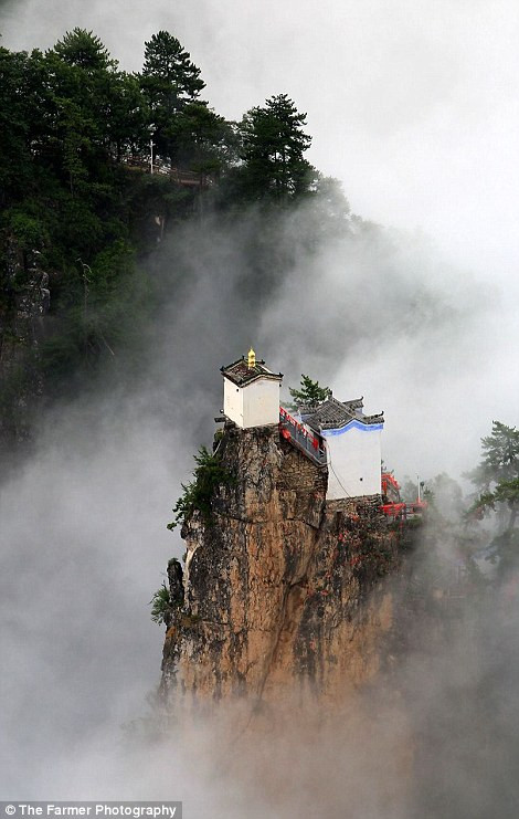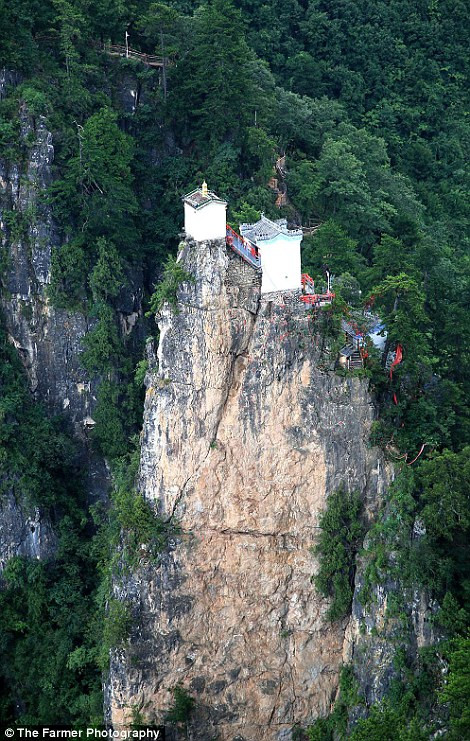 TPO - Trên đỉnh núi Tayun (Thiểm Tây, Trung Quốc) có một ngôi đền nhỏ, nằm cheo leo ở độ cao hơn 1.600m, diện tích chỉ vỏn vẹn 6m vuông và được cố định vào đỉnh núi bằng 4 cột trụ bằng đá.