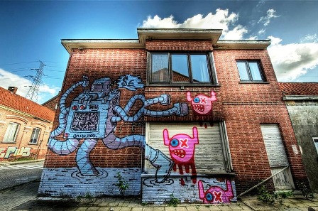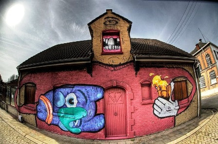 Giờ đây, mặt tiền của các ngôi nhà giờ được phủ kín với những bức tranh nghệ thuật gaffiti với chủ đề phong phú như chuột, gà, nhân vật hoạt hình, người ngoài hành tinh…