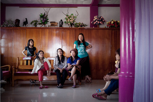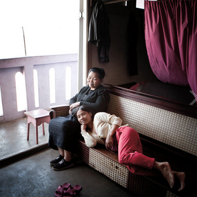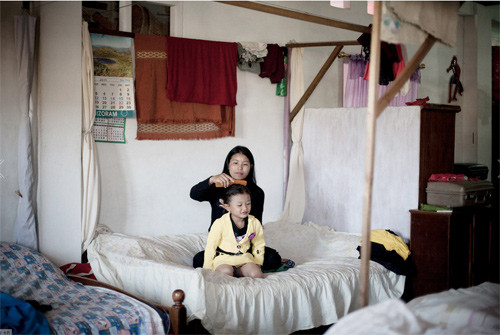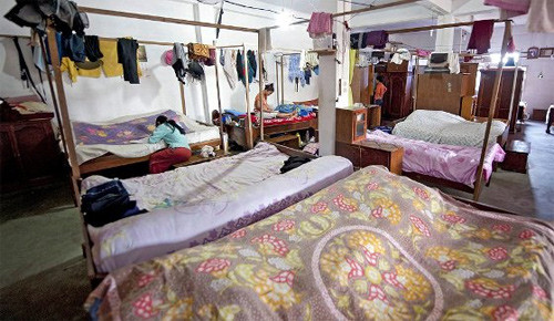 Phòng ngủ chung của các bà vợ với những dãy giường kê sát nhau. Có những người là chị em ruột.
