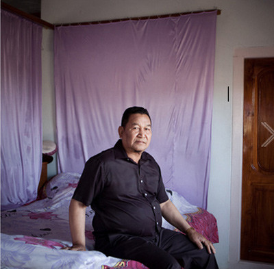 Chủ gia đình, Ziona Chana, trong căn phòng ngủ riêng của mình với hai tông màu yêu thích của ông là hồng và tím.