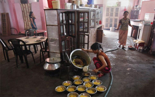 Chị Siami (32 tuổi) đang chăm sóc cho con gái nhỏ 6 tuổi trong phòng ngủ chung của các bà vợ.
