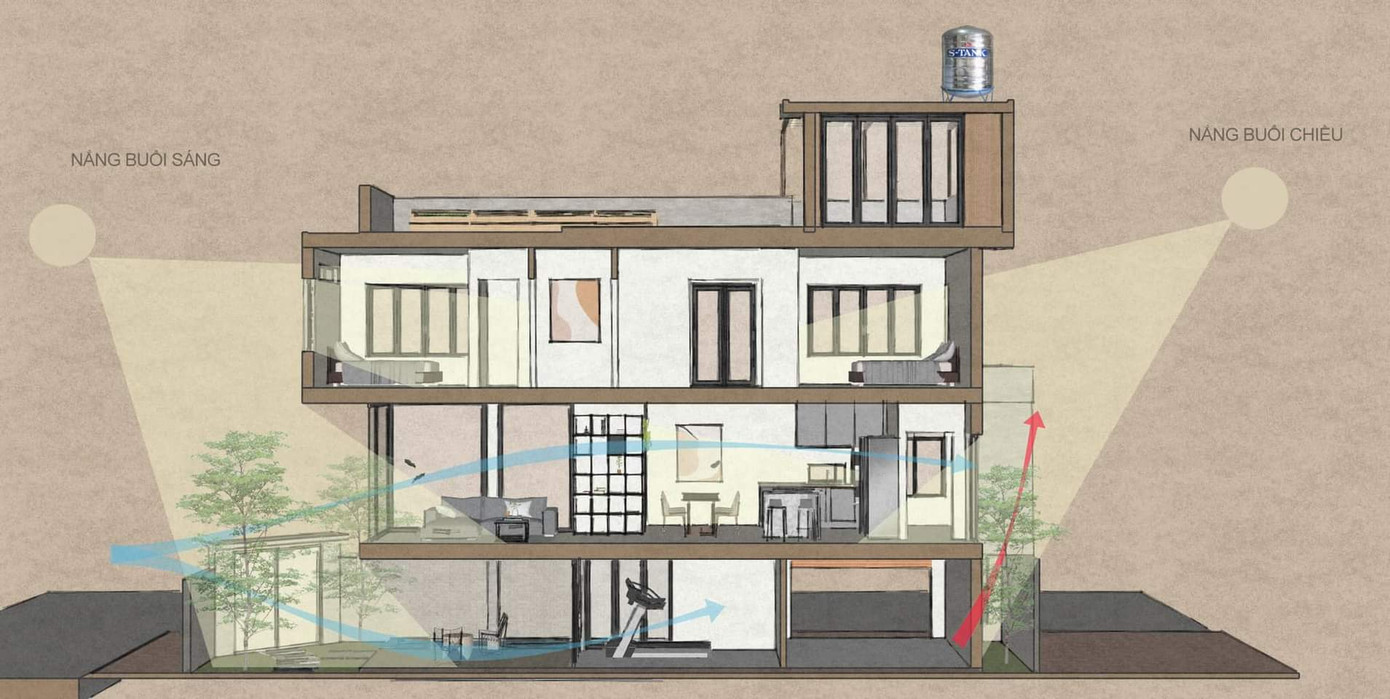 TPO - Căn nhà ống hai mặt tiền dành cho gia đình hai thế hệ được thiết kế với phong cách hiện đại, tập trung vào các yếu tố tự nhiên như ánh sáng và cây xanh để tạo ra môi trường sống hài hòa.