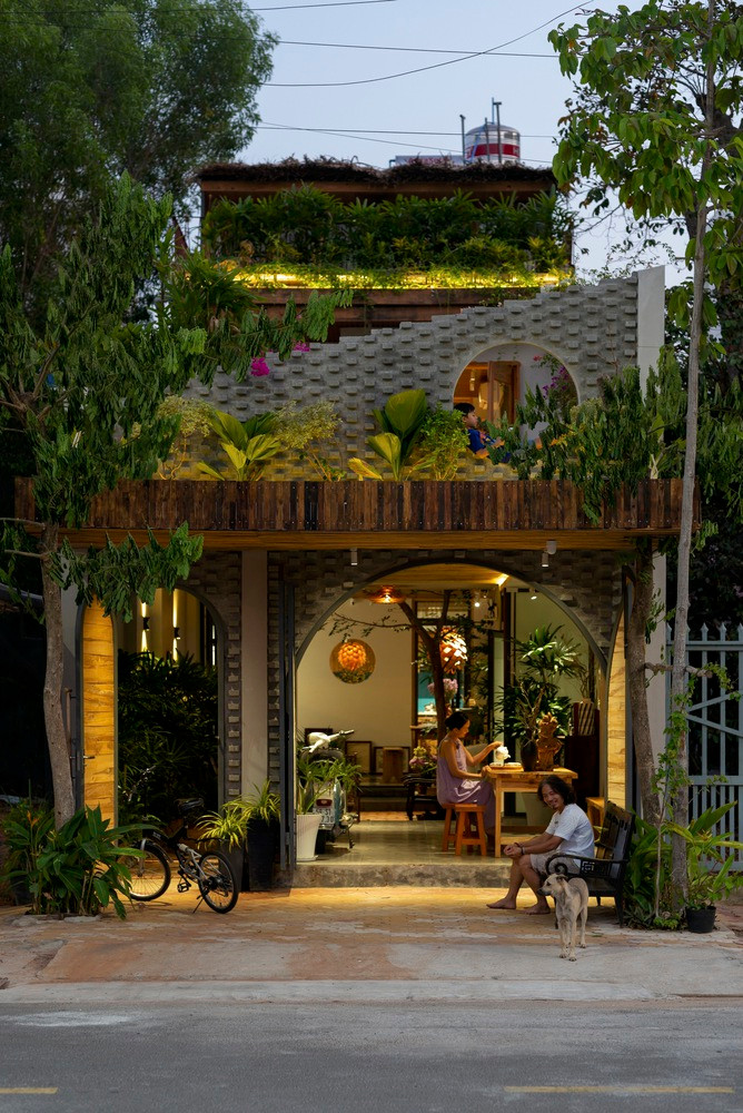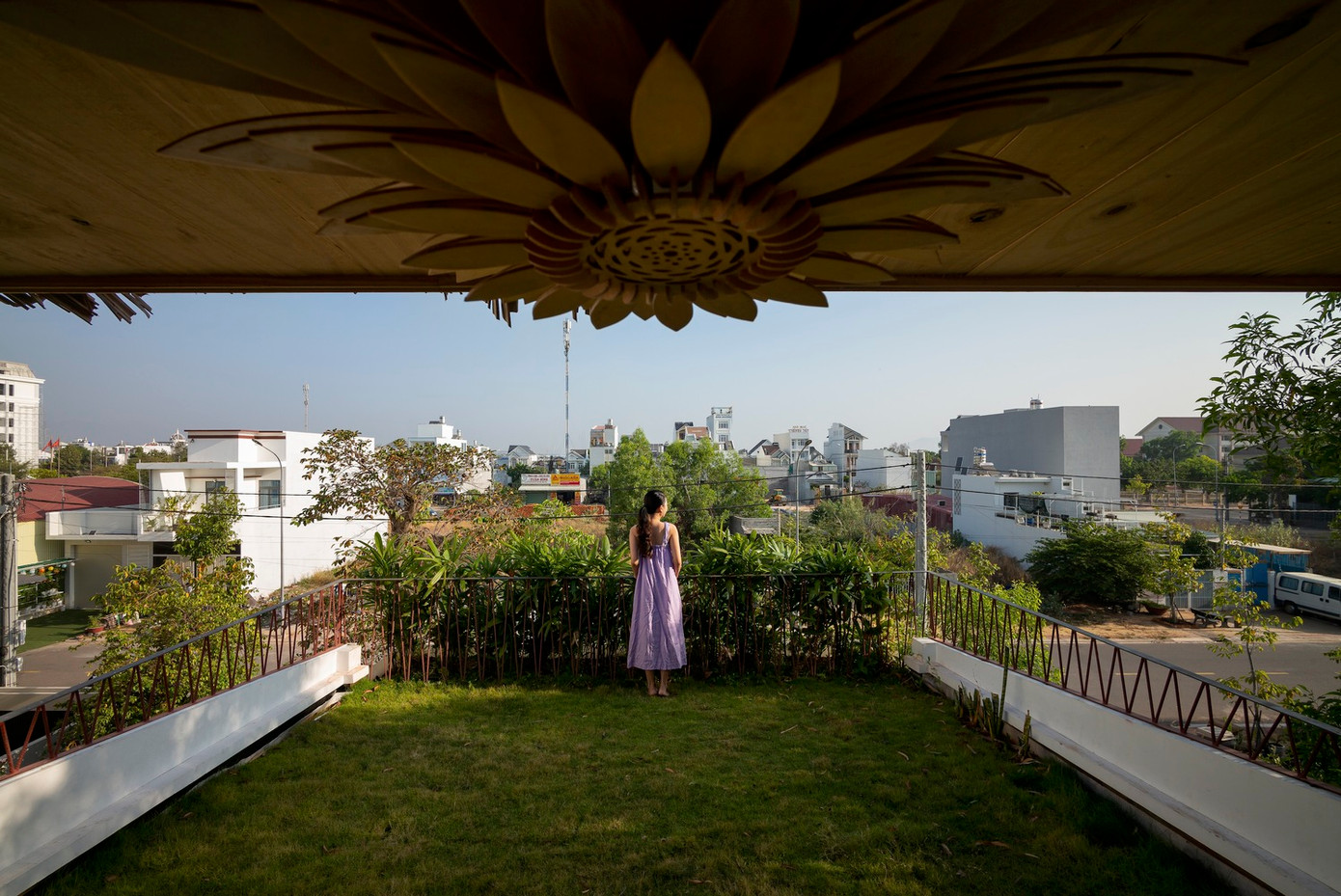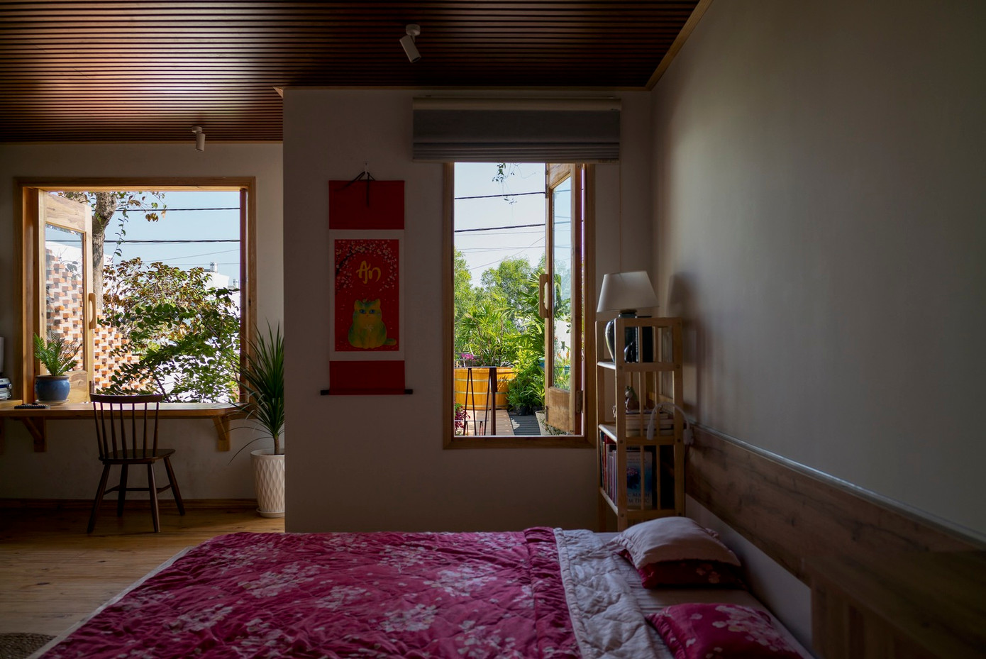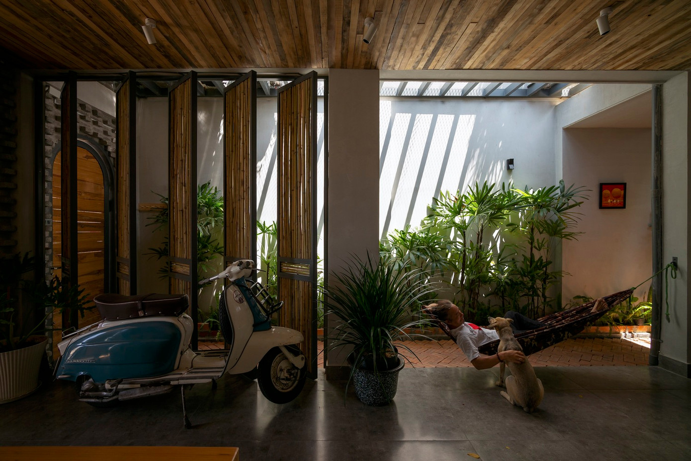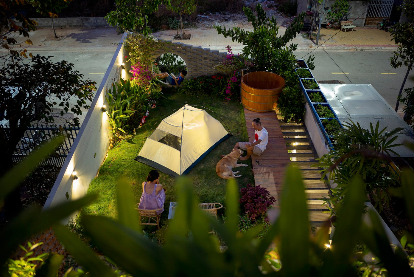 Ấn tượng nhất chính là khu vườn mở về phía bầu trời nhờ được đặt ở tầng 2, không gian xanh mát với cửa tròn gợi nhớ về ngôi nhà của dế mèn trong tác phẩm của nhà văn Tô Hoài, nơi anh ngắm trăng, hóng gió, vuốt râu và luyện tập.