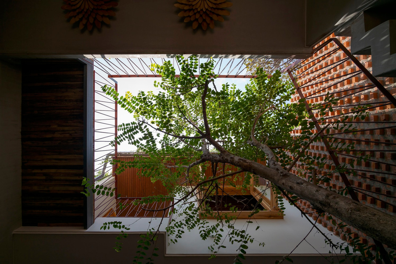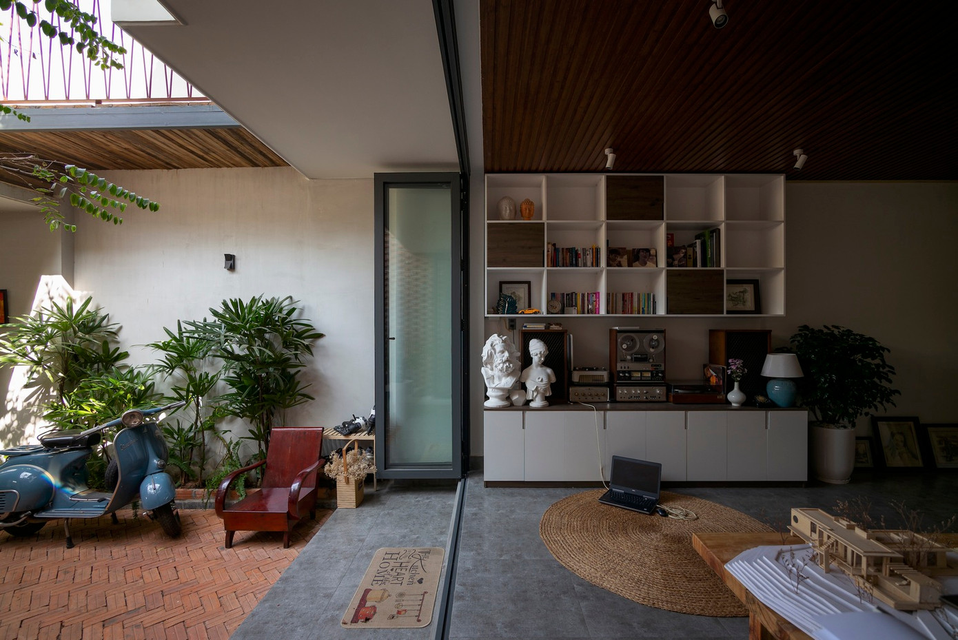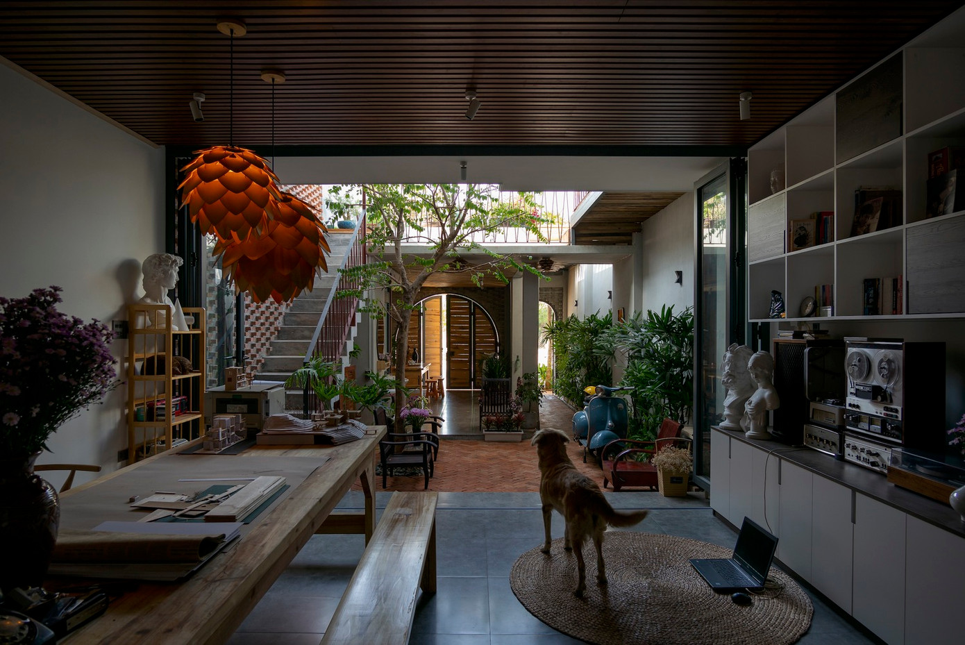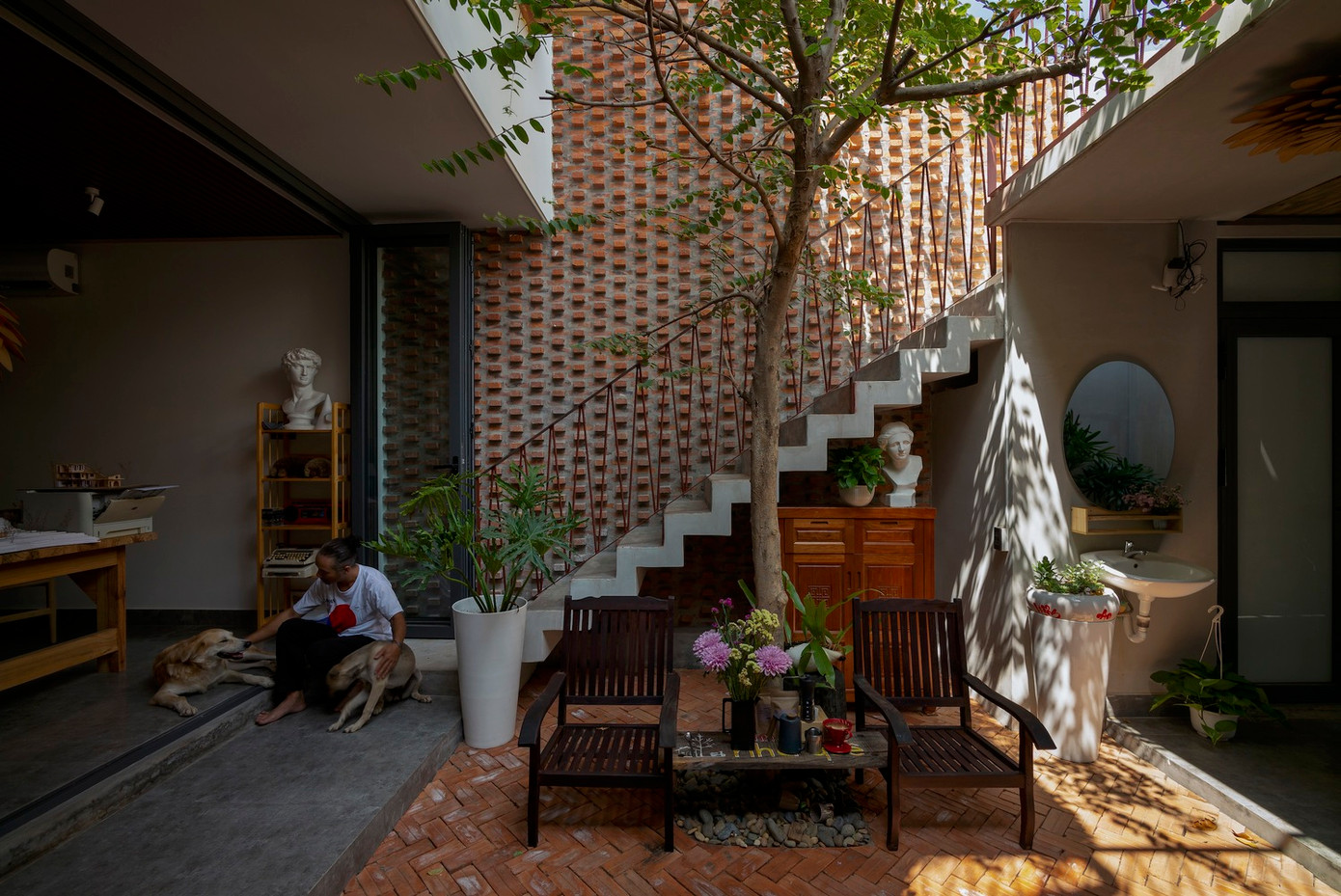 Ấn tượng nhất chính là khu vườn mở về phía bầu trời nhờ được đặt ở tầng 2, không gian xanh mát với cửa tròn gợi nhớ về ngôi nhà của dế mèn trong tác phẩm của nhà văn Tô Hoài, nơi anh ngắm trăng, hóng gió, vuốt râu và luyện tập.