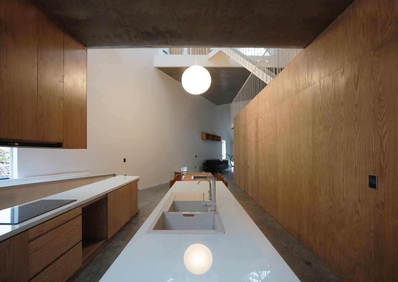 Gia chủ mong muốn một ngôi nhà để ở và quây quần bên nhau sau khi làm việc mệt mỏi. Vì thế, Kiến trúc sư đưa vào công trình cảm giác bình yên khi bước vào một hang động, ranh giới giữa trong và ngoài dần bị chia cắt, nơi những con phố đông đúc và xe cộ biến mất, thay vào đó là không gian, ánh sáng, cảm xúc và gia đình.