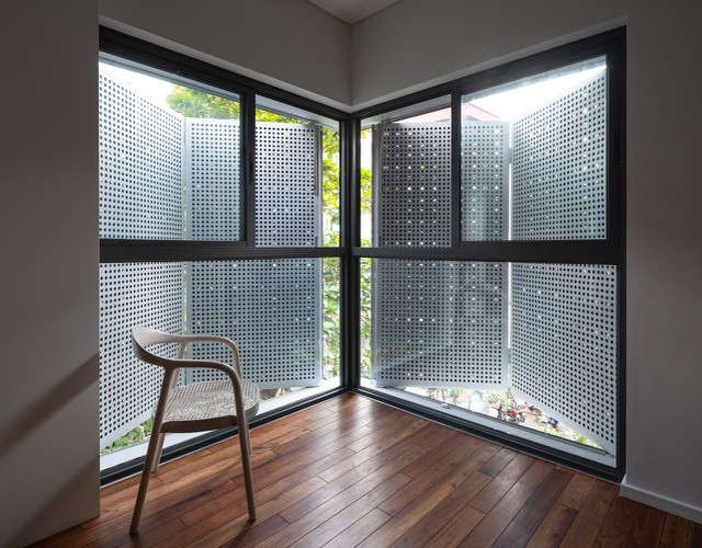 Thiết kế nhiều cửa sổ giao nhau tại các bức tường tạo nên điểm nhấn thú vị cho ngôi nhà.