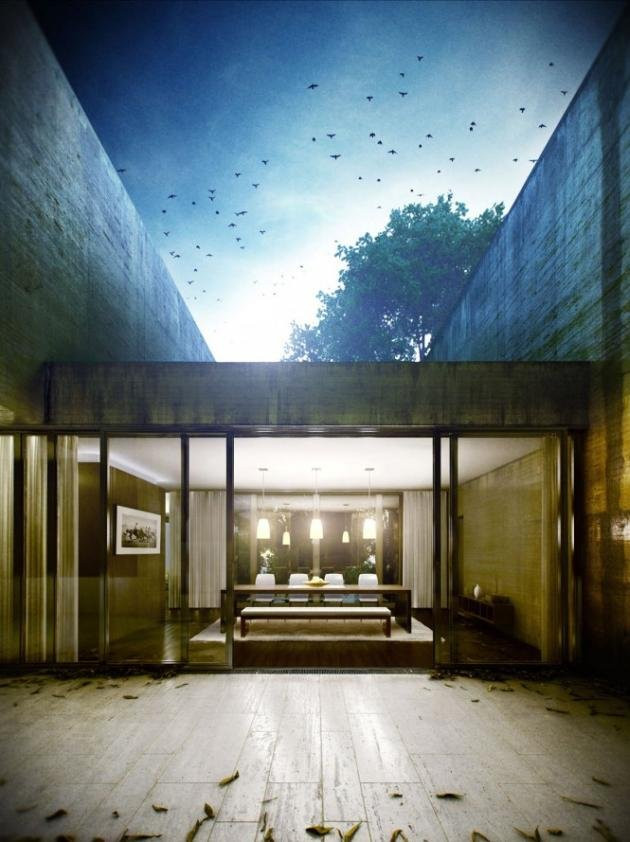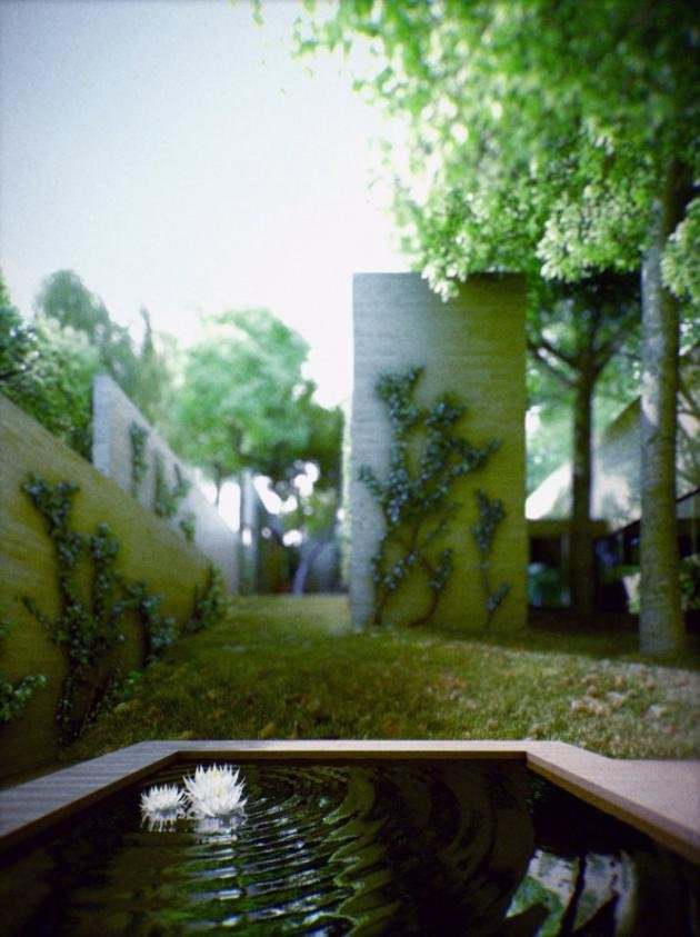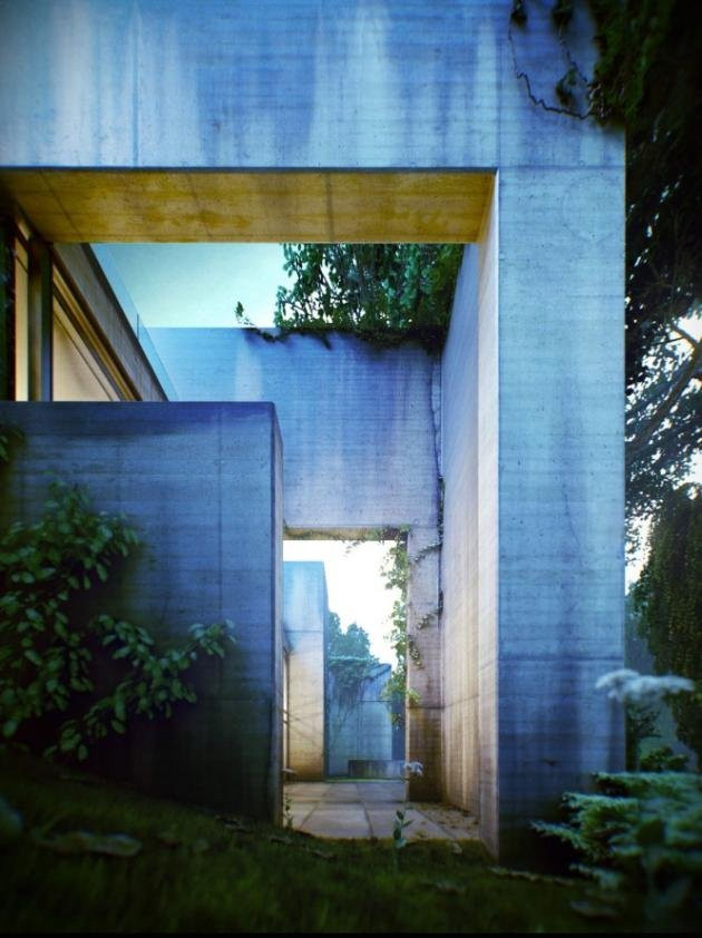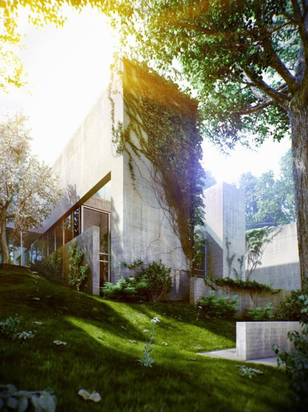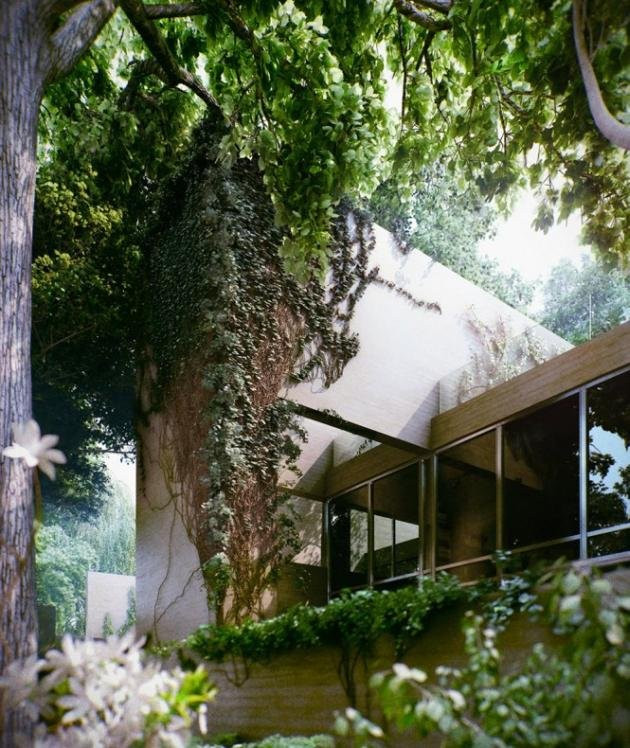 Cấu trúc bê tông hết sức đơn giản để phù hợp với môi trường xung quanh tuyệt đẹp vốn có, khu vườn rợp bóng cây xanh phủ trên mái nhà khiến căn nhà khô cứng trở nên mềm mại hơn. Ngôi nhà xanh này, chính là niềm mơ ước của những không gian đô thị đang ngày càng phát triển.