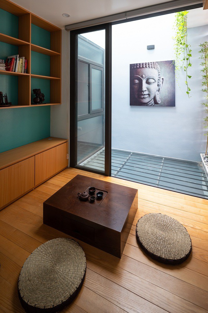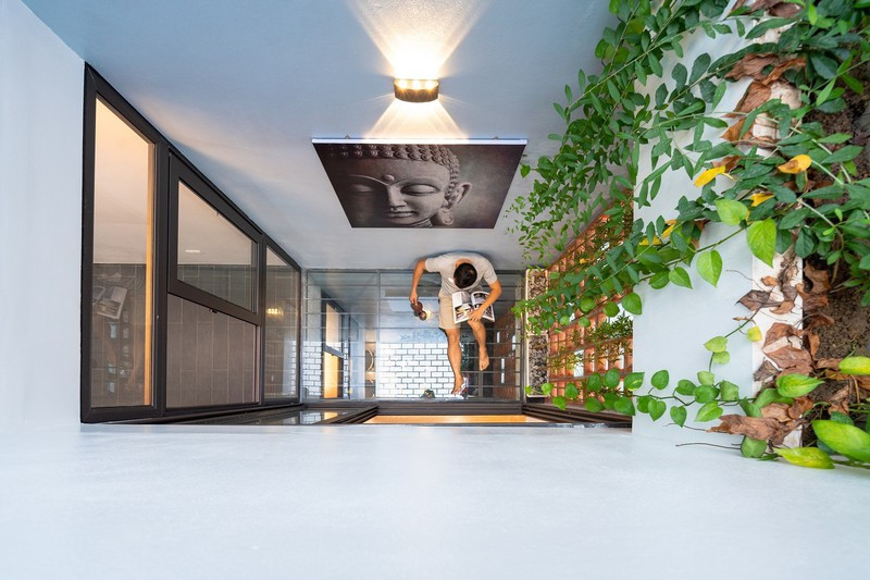 Với mục tiêu là tất cả các không gian phải được tiếp xúc với ánh sáng tự nhiên và thông gió nên gia chủ đã nghĩ đến giải pháp sử dụng một giếng trời để lấy sáng theo chiều dọc.