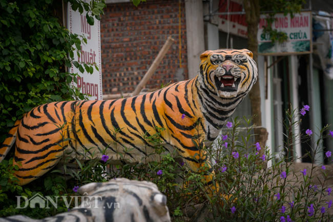 Chủ nhân của ngôi nhà phong thủy lấy ví dụ, hồi đầu mới xây nhà, anh đặt trước cổng là tượng nai, sau đến sư tử, tiếp theo là cá chép và hiện tại thay bằng tượng hổ; tượng đại bàng cũng được thay bằng tượng ngũ hổ, dưới chân tượng hổ là 5 loại hoa khác nhau; đặt thêm tượng rồng và tượng Vua Hùng trước cổng nhà…