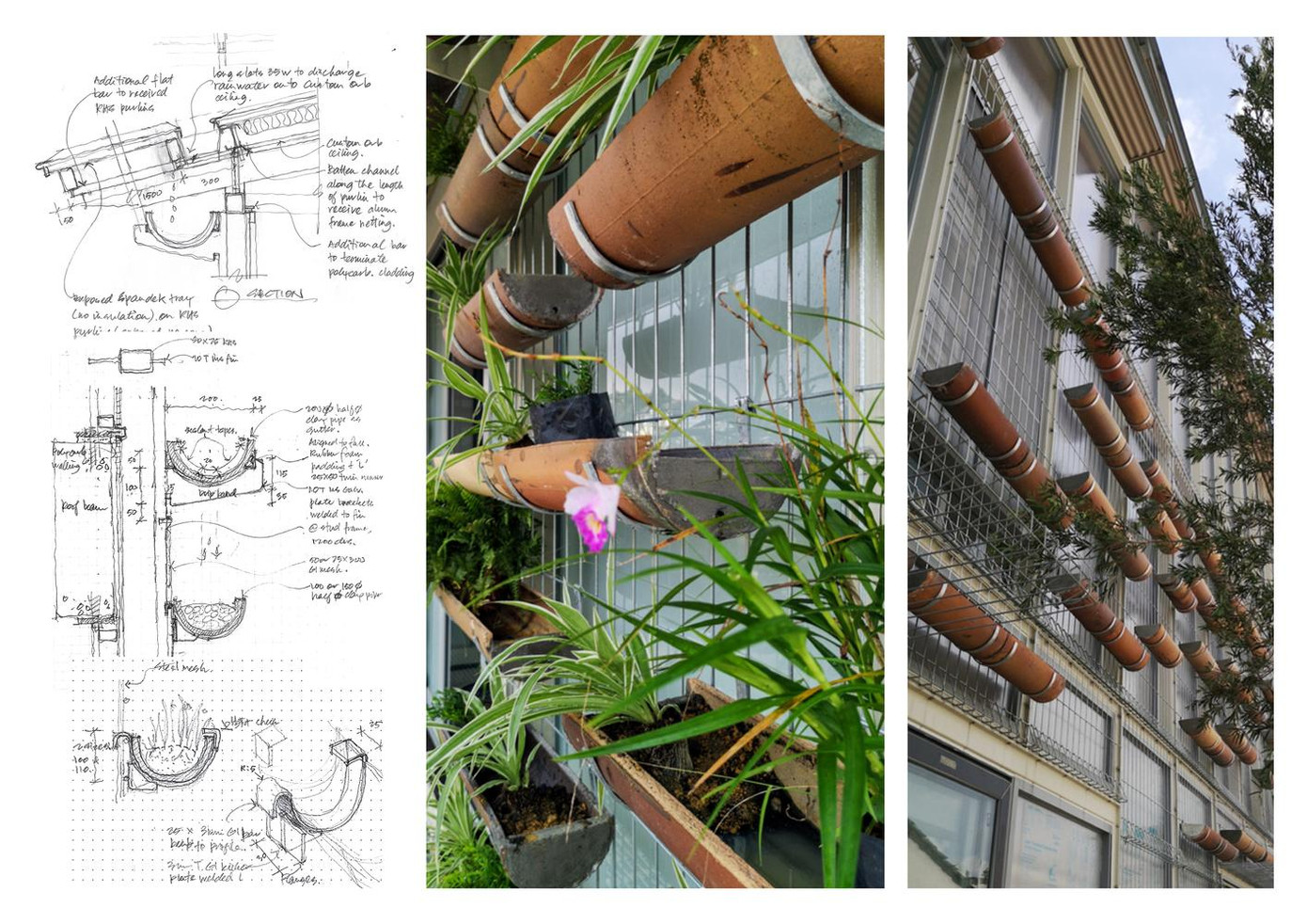 | Các cây sẽ được trồng trong những ống tre tái chế nên nhìn từ xa ngôi nhà giống như một khu vườn treo độc đáo. |