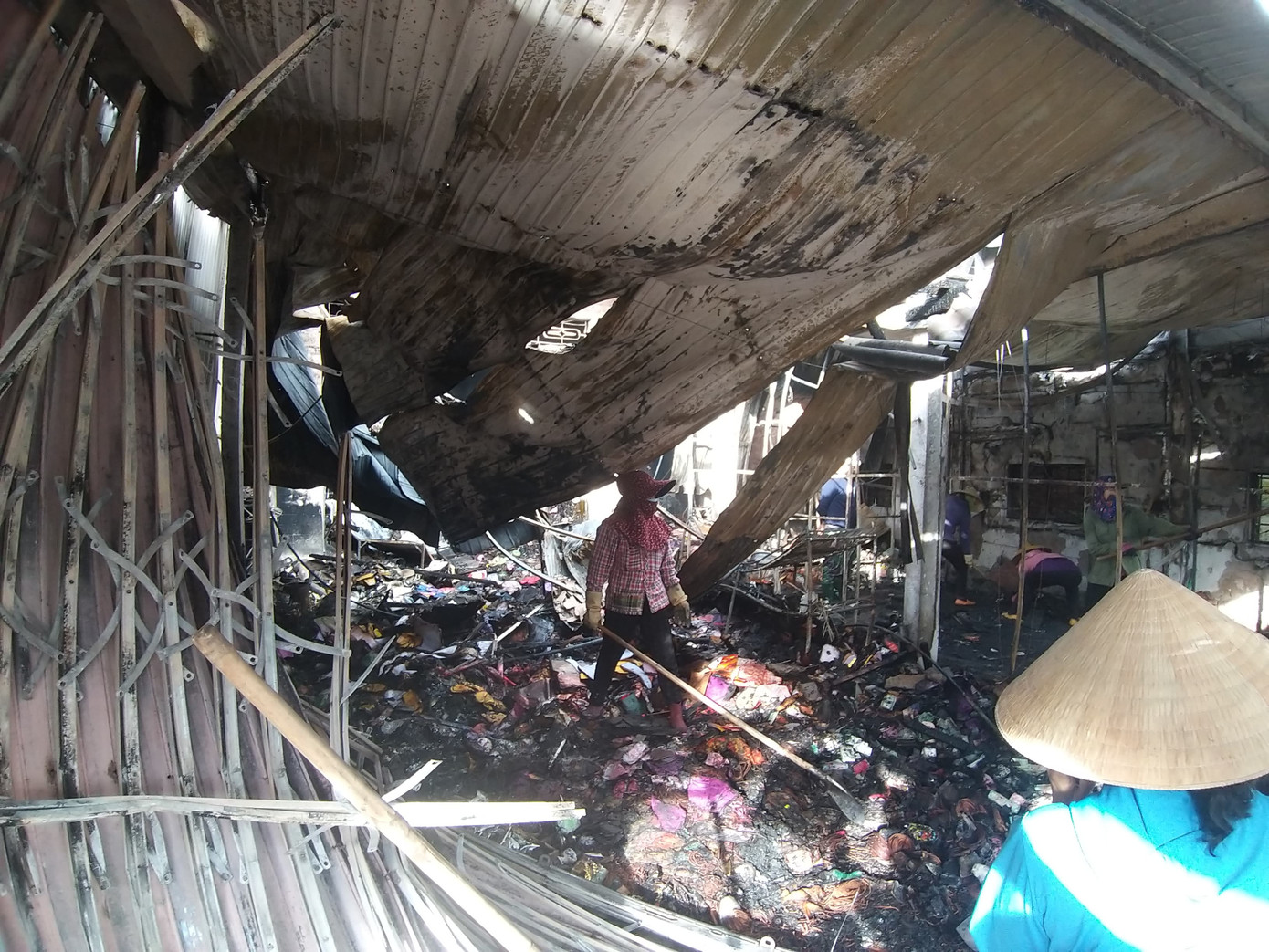 Người dân tiến hành dọn dẹp sau vụ cháy.