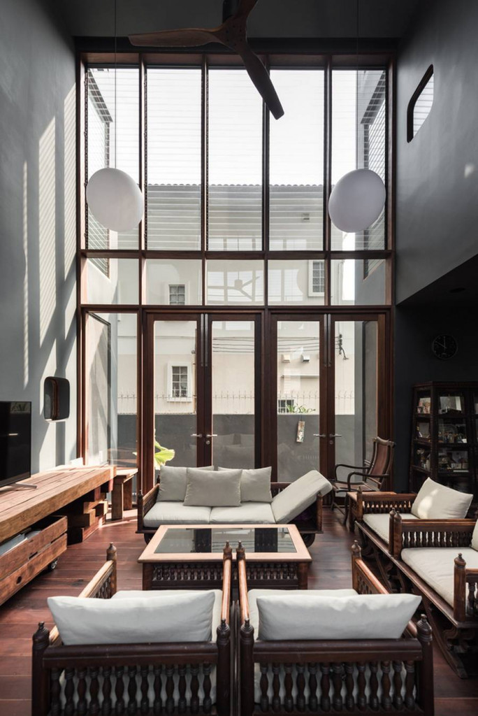 Cửa kính lớn lấy sáng từ hai bên hông nhà.