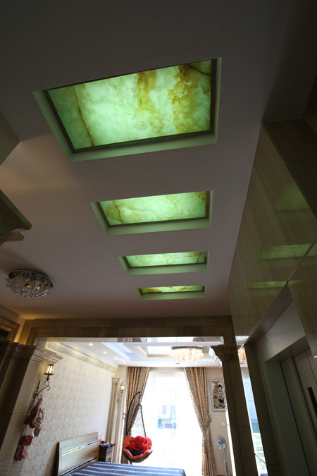 Đam mê sưu tập đá hoa cương, vợ chồng doanh nhân ở Hạ Long (Quảng Ninh) trang trí tổ ấm bằng nhiều loại đá quý xuyên sáng… giúp ngôi nhà ấm áp vào mùa đông, mát mẻ về mùa hè. Các chi tiết lắp đá được bàn tính với đơn vị thi công chu đáo, nhất là tại các vị trí trần bằng đá xuyên sáng có gắn đèn bên trong.